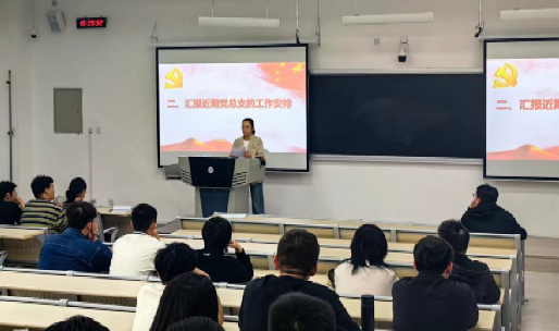 学生党总支在博达校区第二教学楼A204组织召开学生党员大会。学院学术副院长、学生党总支书记李鑫、组织员杨伊欣、辅导员仲涛、朱西昆·居来提及全体学生党员参加会议,会议由学生党总支副书记买尔哈巴·多力坤主持。