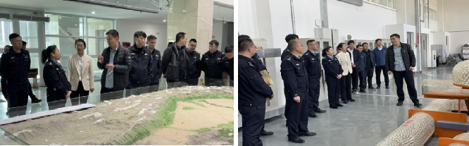 布沙盘、矿石陈列区及采矿工程系实验室,了解了学院发展历史沿革及实验室发展和实验设备情况。