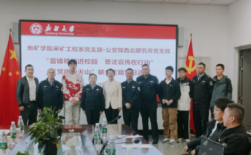 采矿工程系教工党支部、学生党支部与公安部西北研究所党支部联合开展“雷锋精神进校园 普法宣传在行动”“党旗映天山”联合主题党日活动。公安部西北研究所党支部书记祁红霞、副所长刘凡及支部党员,学院采矿工程系教工党支部、学生党支部支委及全体党员参加活动,学院党委书记孙琳杰、副书记阿地力·多力坤列席参加。
