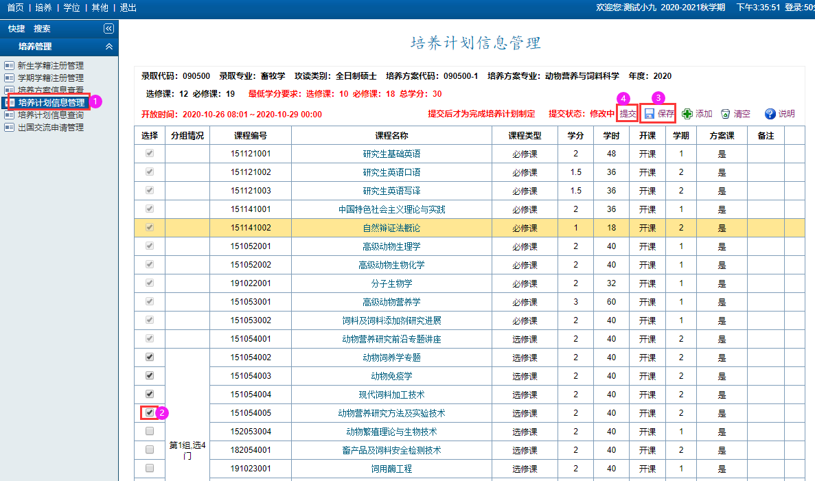 功能菜单:培养 → 培养管理 → 培养计划信息管理